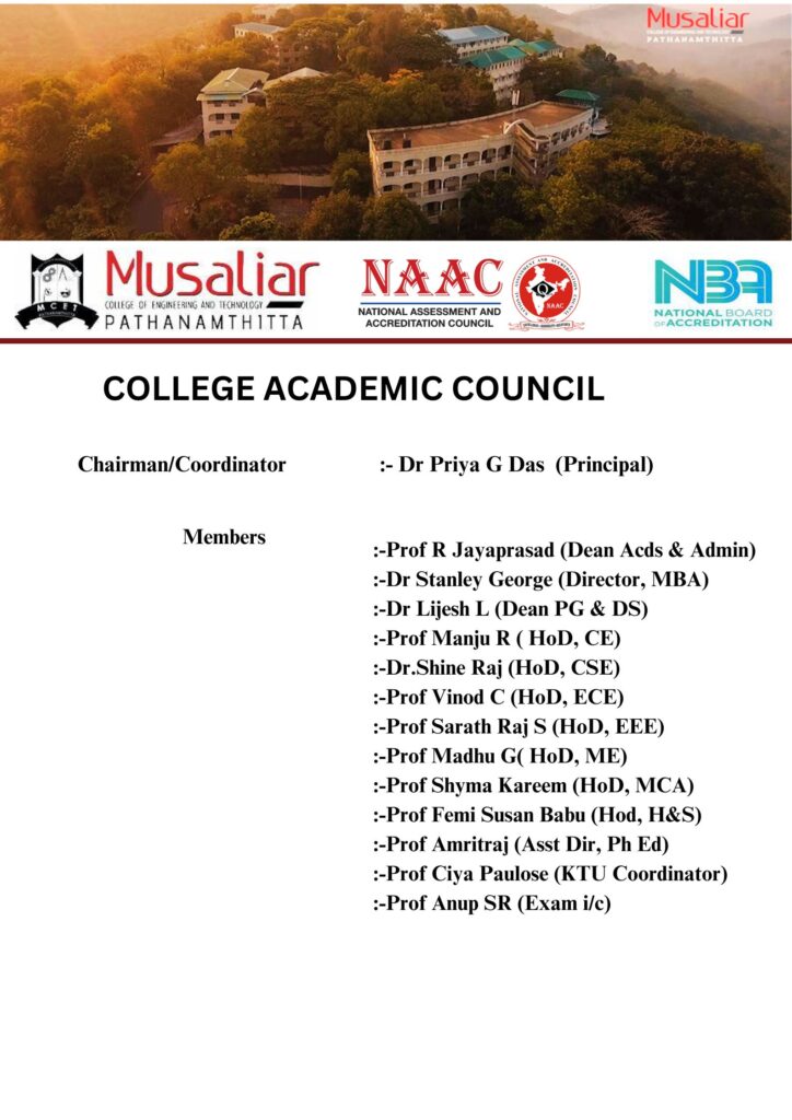 - Constituted of Principal, Deans, Director, Management Studies and student representative.