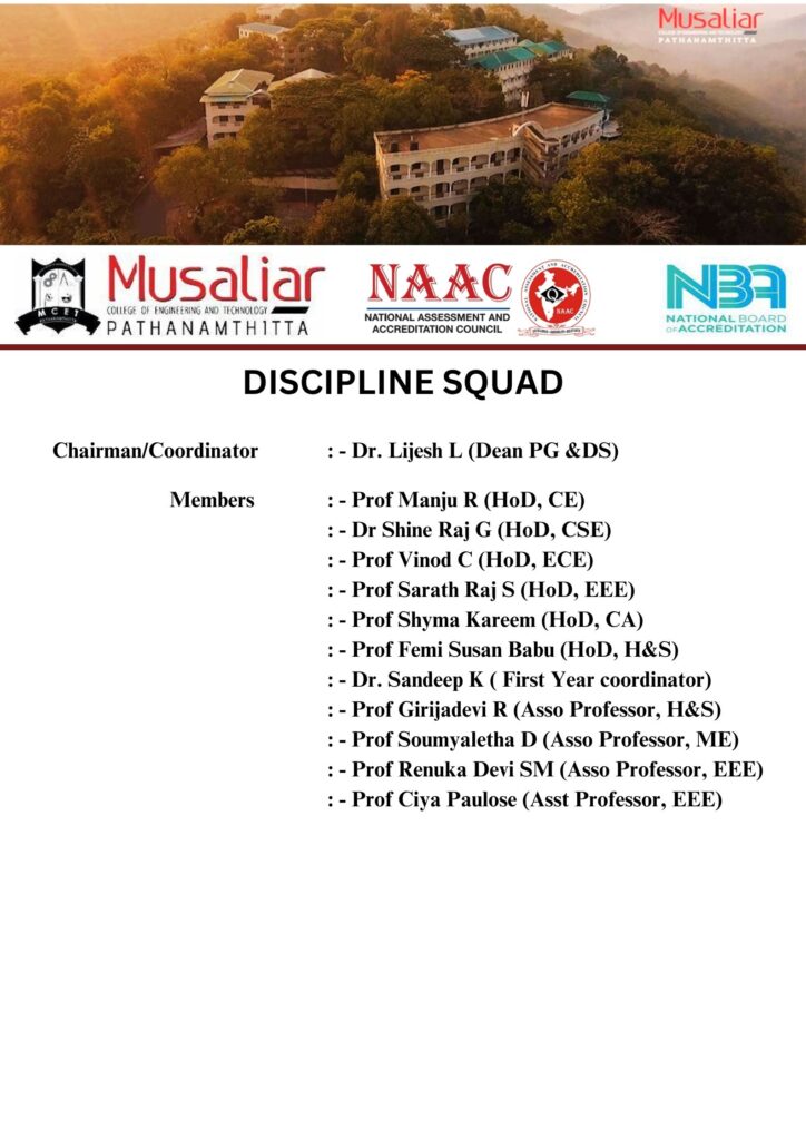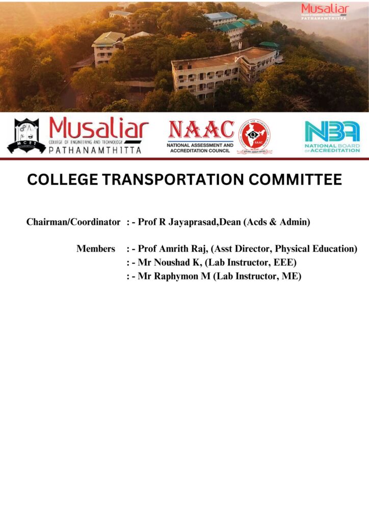 - Responsible to address grievances of students in infrastructure and services offered by the Institute.