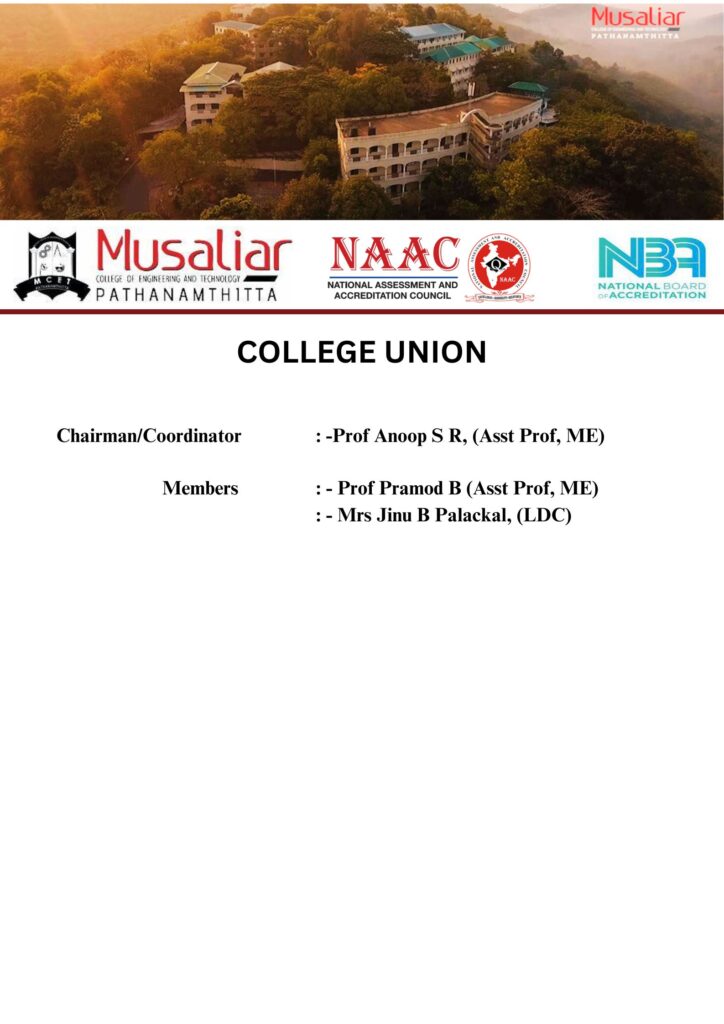 - Formulate, finalize and regulate extracurricular activities viz educational tour, technical fest, Industrial visits, Internships etc.
