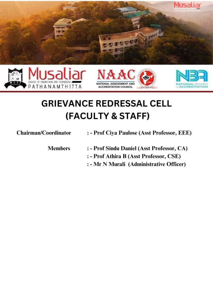Grievance Redressal Cell for Faculty/Staff