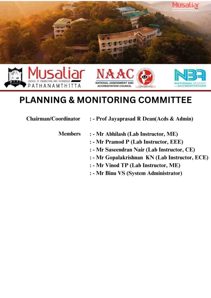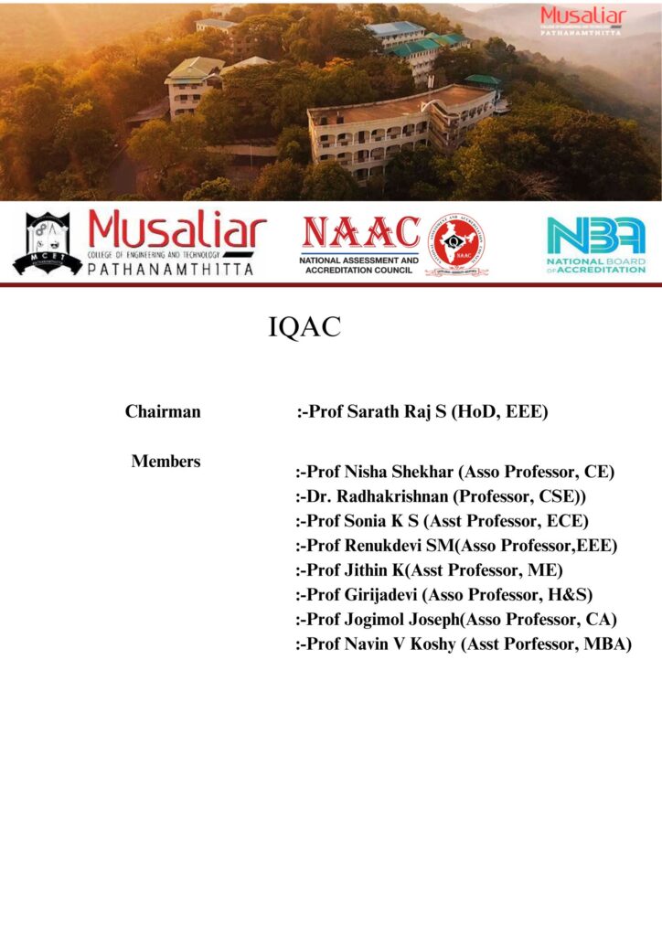 - Acting as a nodal agency of the Institution for coordinating quality-related activities, including adoption and dissemination of best practices.