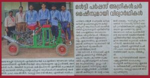 Our talented final-year Mechanical Engineering students have showcased their creativity and technical expertise by developing a multi-purpose agrimachinery vehicle. This innovative project, led by our students, Hiran H, Ansil Rahim, Akhil Suresh and Afsal B, aims to revolutionize agricultural operations by integrating multiple functions into a single machine. The vehicle, equipped with a 150-cc, 4-stroke … Continue reading Innovative Minds at Musaliar College of Engineering & Technology